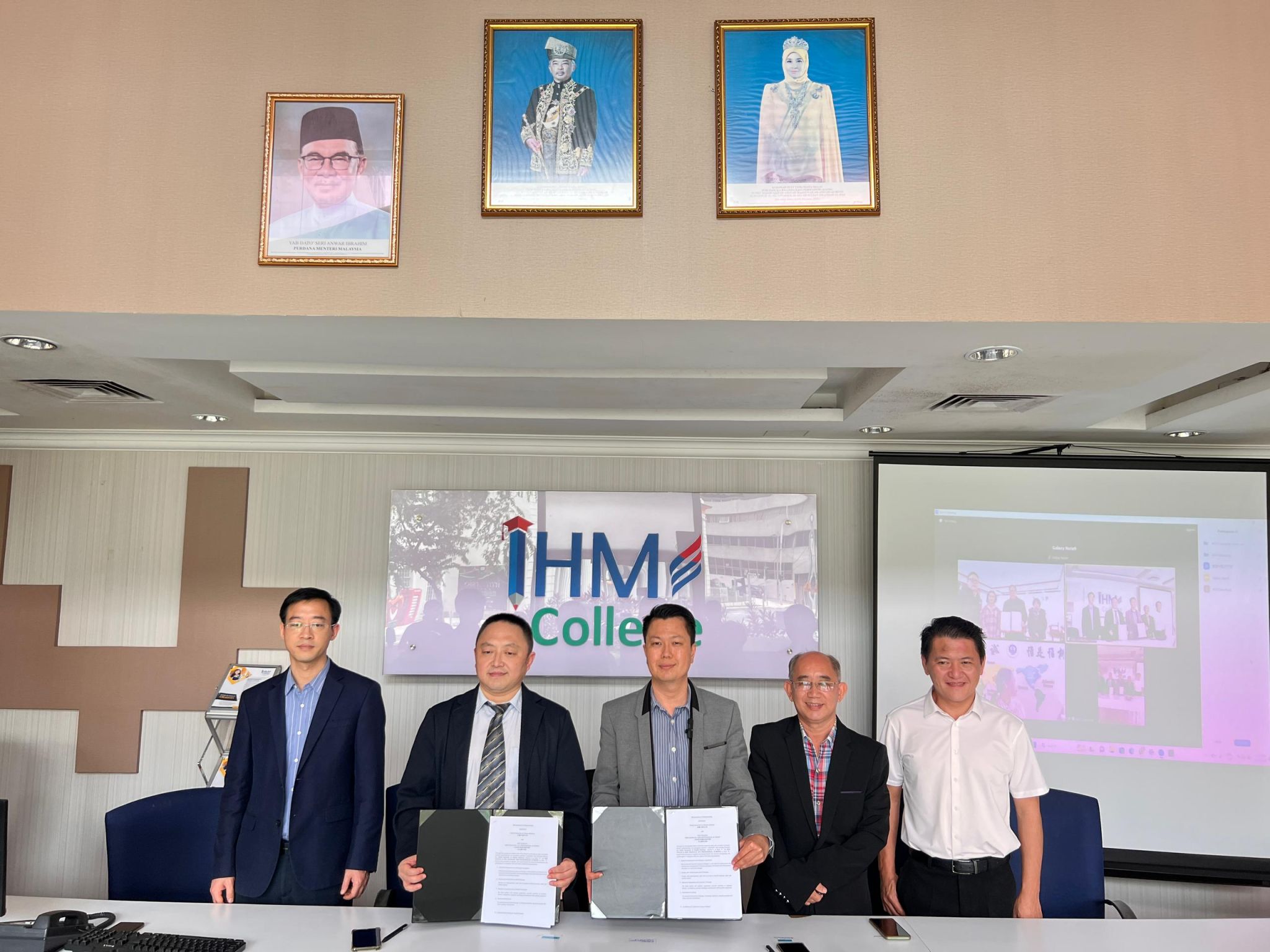 此外,1月9日下午,m88官网与马来西亚英豪专业公司签署了合作意向书,双方将共同开展中医课程联办。m88经理周亚东、副经理昂文平以及外事办全体成员通过远程线上方式参加了签约仪式。马来西亚英豪专业公司经理彼得陈桂德、总监龍泗文、高级中医教育导师总监拿督龍田俊、中医国际总监江吉翔以及m88官网针灸推拿公司副经理吴子建和教授吴生兵也一同出席了签约仪式,并见证了合作意向书的签署。
