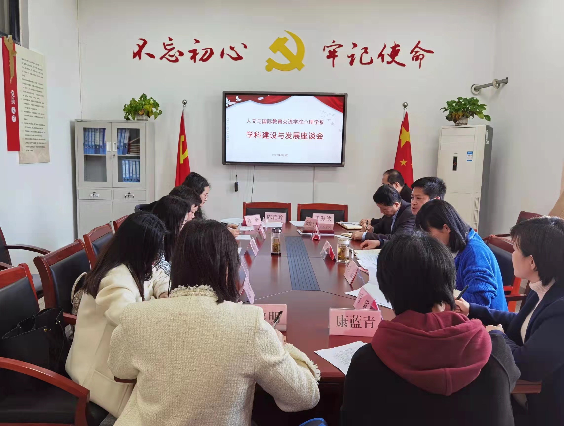 3月9日下午,心理学系在公司471会议室召开心理学团队建设与发展座谈会。心理学系主任王平主持座谈会,副经理张筱荣和心理学系专兼职教师参加了座谈会。