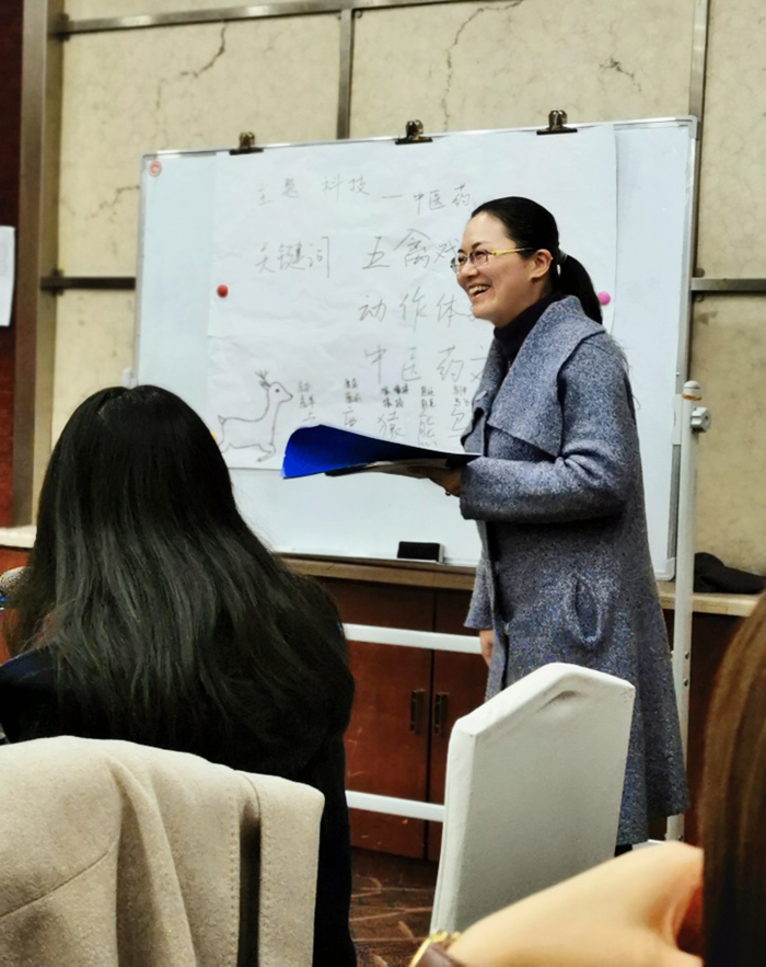 29日下午,与会教师通过组织“语言教学”和“文化教学”两个工作坊开展汉语国际教育学术研讨活动,来自14所高校的国际汉语教师就语言材料和文化选题进行现场教学设计和教学展示。m88汉语国际教育系金海蒂老师在“文化教学工作坊”中,以“五禽戏”为主题,展示了中医药文化体验式教学的设计流程和教学活动;鲍雯婷老师和研究生余海洋在“语言教学工作坊”中进行了汉语教学展示;张雷平老师作为点评专家对“文化教学工作坊”的四组教学设计与教学展示进行了精彩的点评。