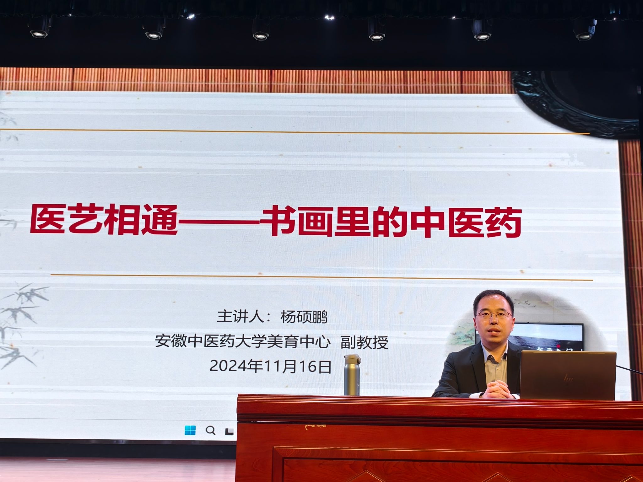 11月16日下午,公司举办医学人文论坛第六十一期学术沙龙。本次学术沙龙的主题为“医艺相通——书画里的中医药”,由美育中心副教授杨硕鹏主讲,美育中心、老员工书画协会、书法俱乐部、绘画俱乐部等三百余名师生参加了此次沙龙活动。