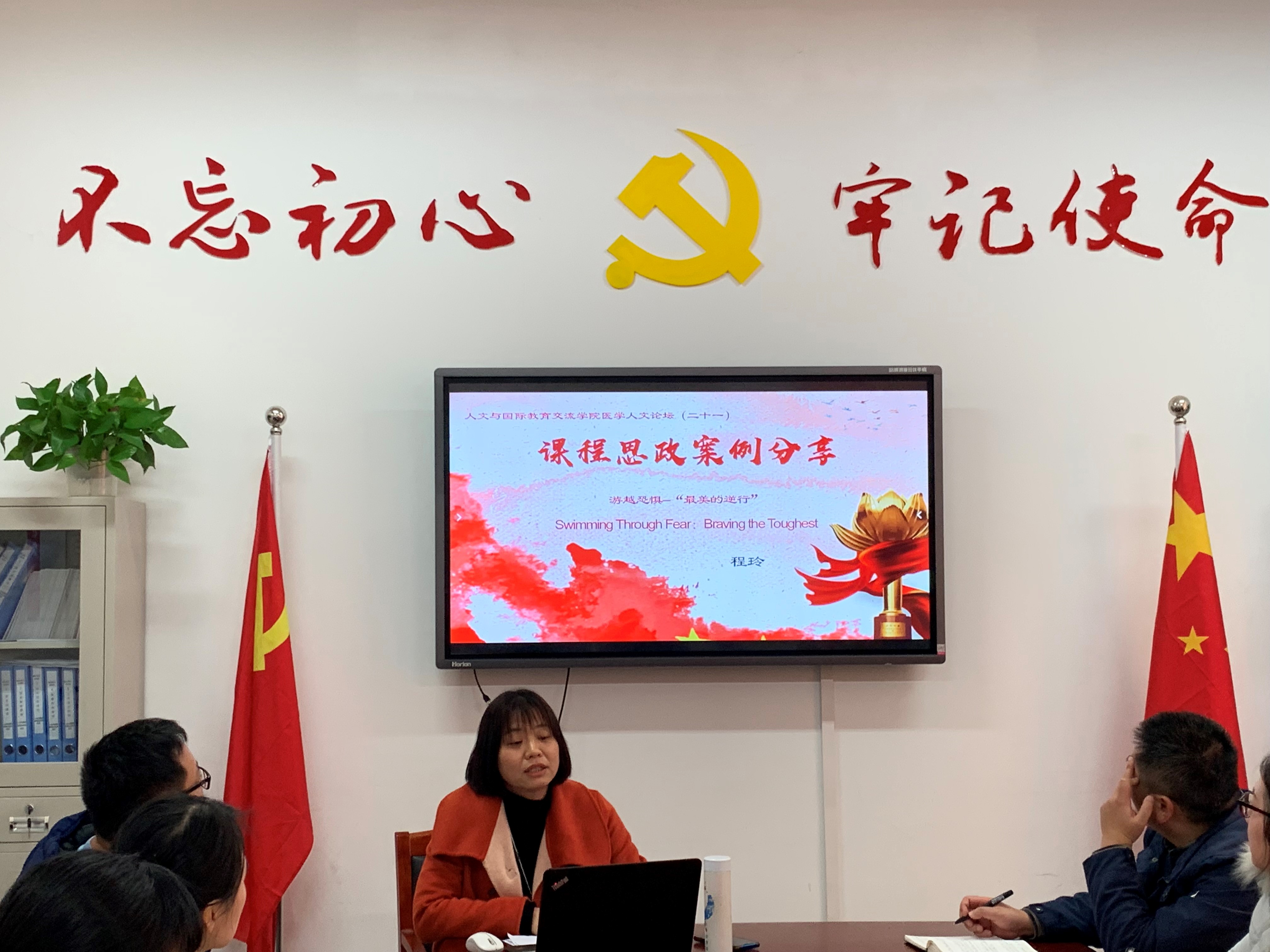 本次沙龙以“大学英语课程思政案例分享”为主题,就大学英语课程教学中的一个思政案例的教学目标、教学内容、课程思政设计思路、案例导入、教学过程、思政点睛等六个方面进行分享和讨论。在沙龙上,老师们积极发言,就中医药高校《大学英语》课程思政的特色、课程思政的显性呈现和隐性融入等方面进行了讨论。