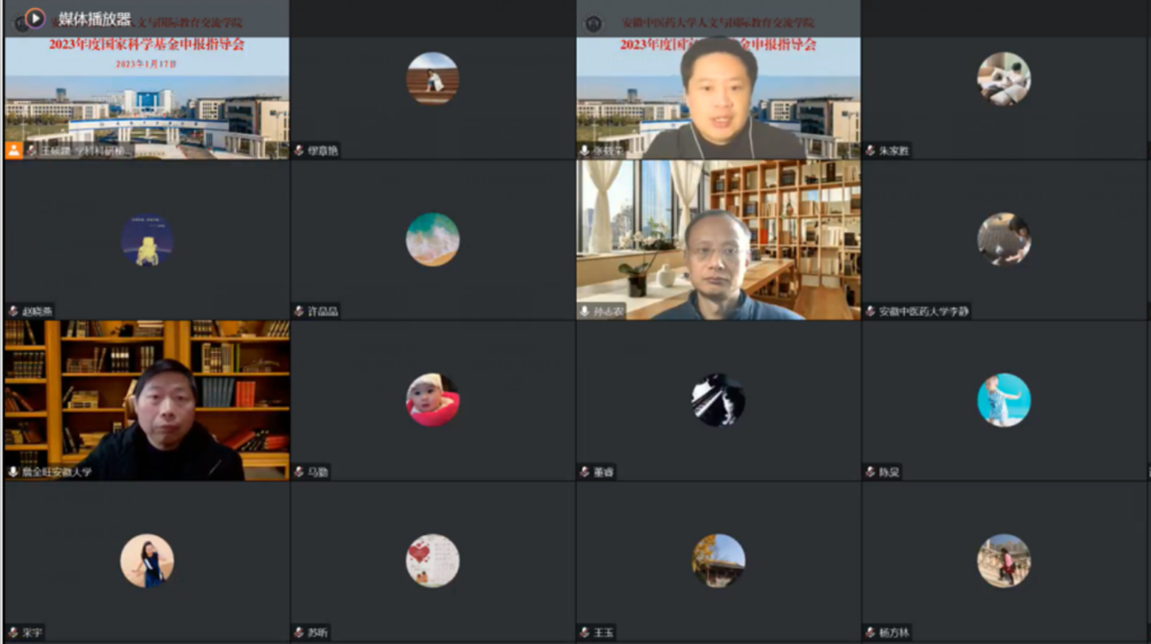 1月17日上午举办外语专场线上专家指导会,詹全旺教授和孙志农教授听取了朱家胜、杨方林、程玲、缪章艳、许晶晶等老师的申报书汇报,从选题内容的适配、研究价值的展现、研究目标的拓展、团队结构的调整、参考文献的甄选、写作格式的修改等方面,对申报书提出了修改意见。