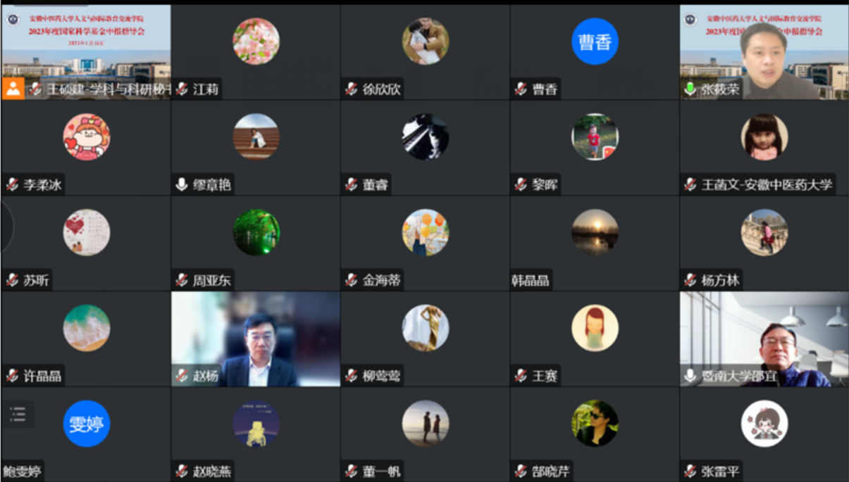 1月16日上午召开汉语国际教育专场线上专家指导会,张雷平、卜菲菲、徐欣欣、曹香、常先甫等老师汇报了各自申报书的选题依据、主要内容和创新点,赵杨教授和邵宜教授围绕国际中文教育前沿问题,从强化问题意识、优化项目选题、选取研究角度、明确研究目的、突出研究亮点、展现研究成果等方面,对申报书提出详细的修改建议。