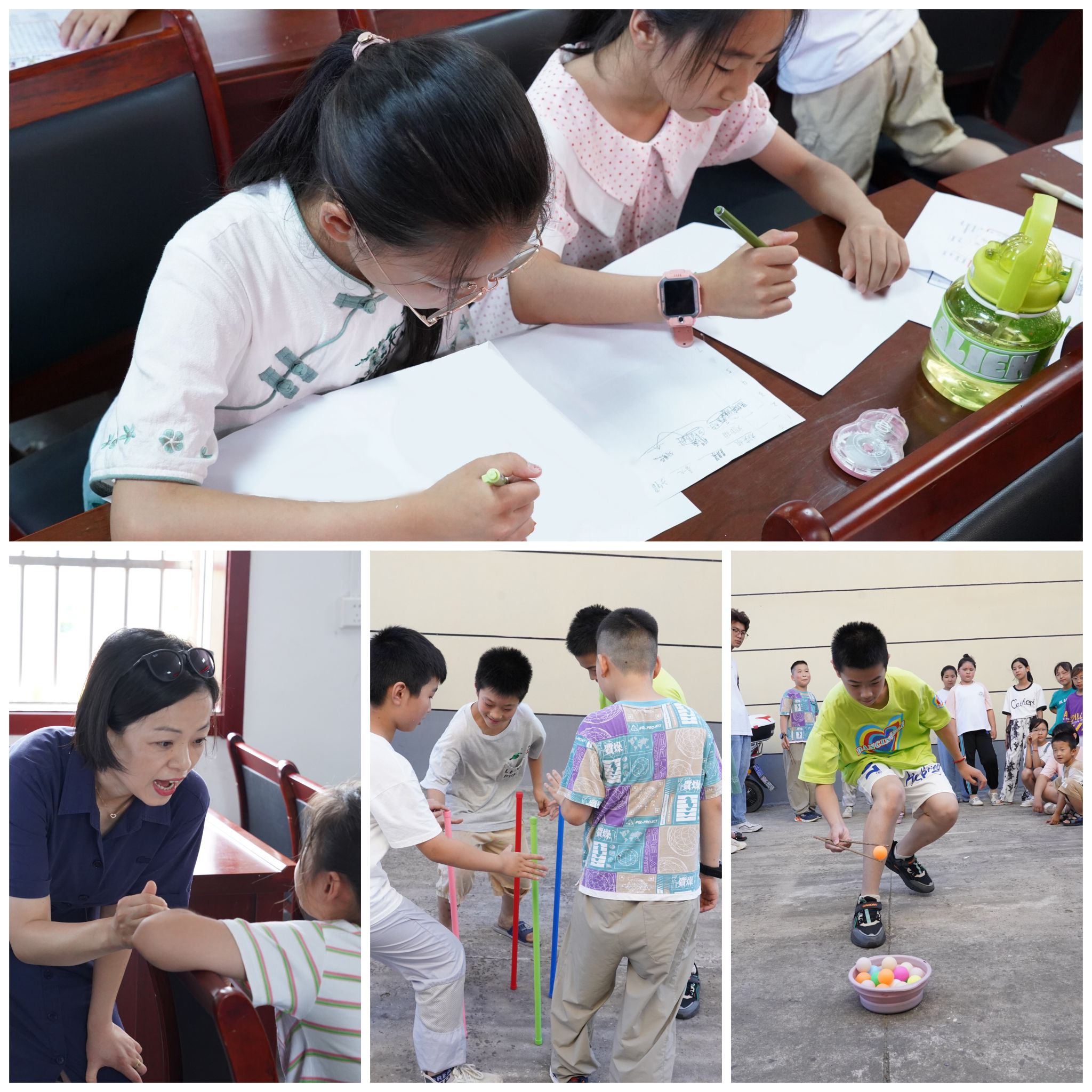 肥西县官亭镇党委委员孙翔飞、妇联主席李隆梅、团委书记董昆,公司党总支书记金晓琴、副书记彭青和、分团委书记王满和实践团同学们共同深入探讨了家-校-社协同青少年心理健康教育。实践团队成员带领江夏店社区中小员工开展了“心沐阳光,岐黄葳蕤”青少年心理团建系列活动。包括“手脚并用”、“不倒森林”、“珠行万里”、“环环相扣”、“夹乒乓球”、“四人五足”、“心理健康绘画”等心理团建系列活动帮助员工在娱乐中进行心灵放松,缓解压力。在活动中享受欢声笑语,感受集体的力量,团结的魅力。