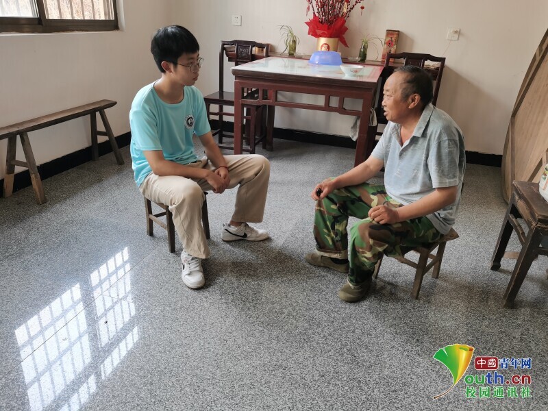 图为队员与当地老党员交谈 中国青年网通讯员 罗媛旦 摄