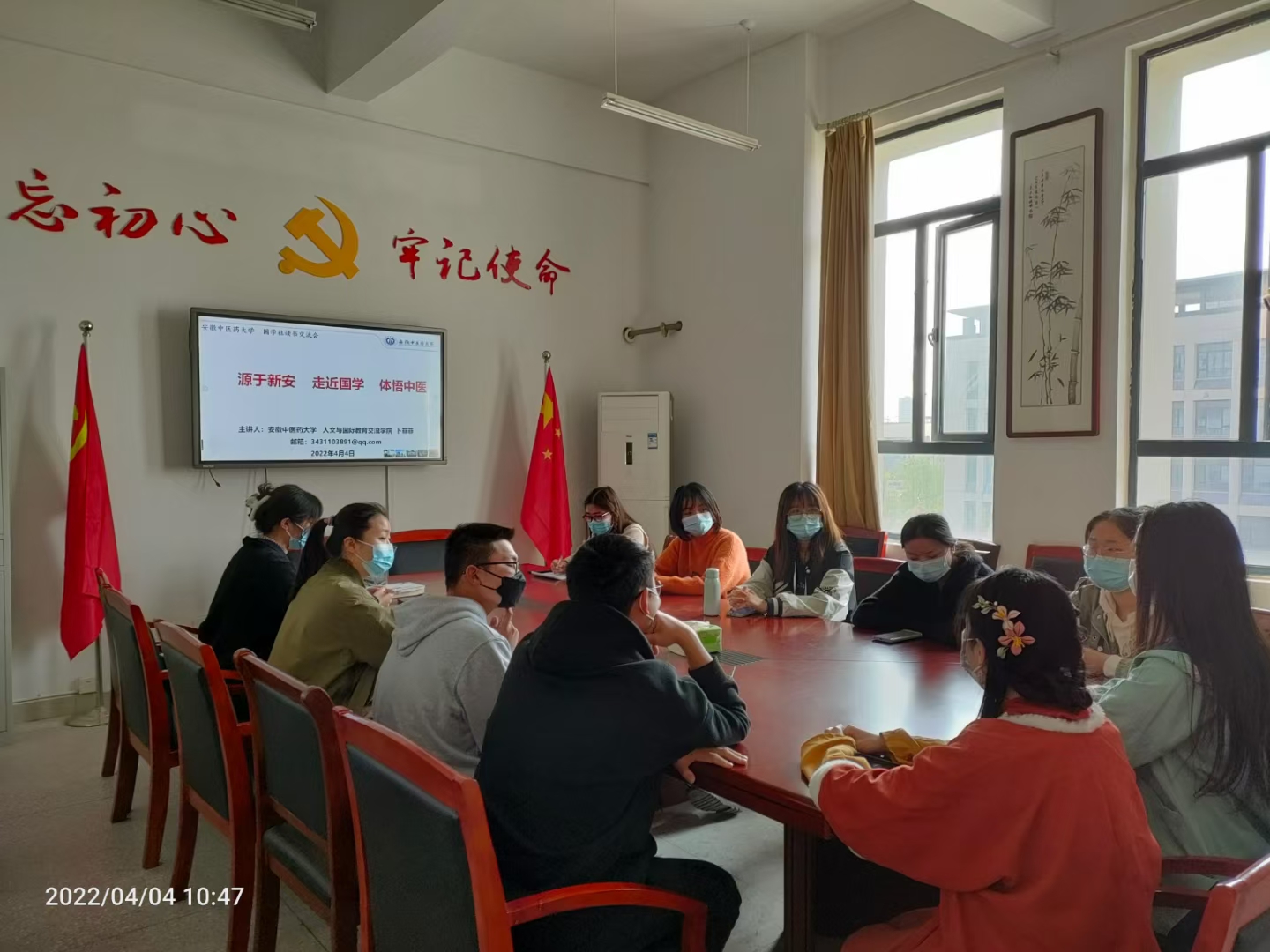 天朗气清,惠风和畅,正值读书好时节。4月4日上午,公司老员工国学社举办师生读书交流会。本次交流会由老员工国学社指导教师m88卜菲菲主讲,主要围绕中医学、新安医学和国学三个方面进行展开。老员工国学社骨干成员参加本次交流会。