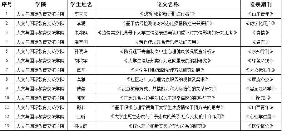 2021年1月至今,公司本科生以第一作者在各级各类学术杂志公开发表论文13篇。2021年度老员工创新创业计划项目国家级立项10项、省级14项,立项率全校第一,国家级结项14项、省级13项,成果丰硕。