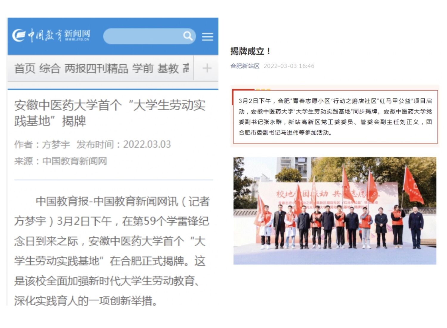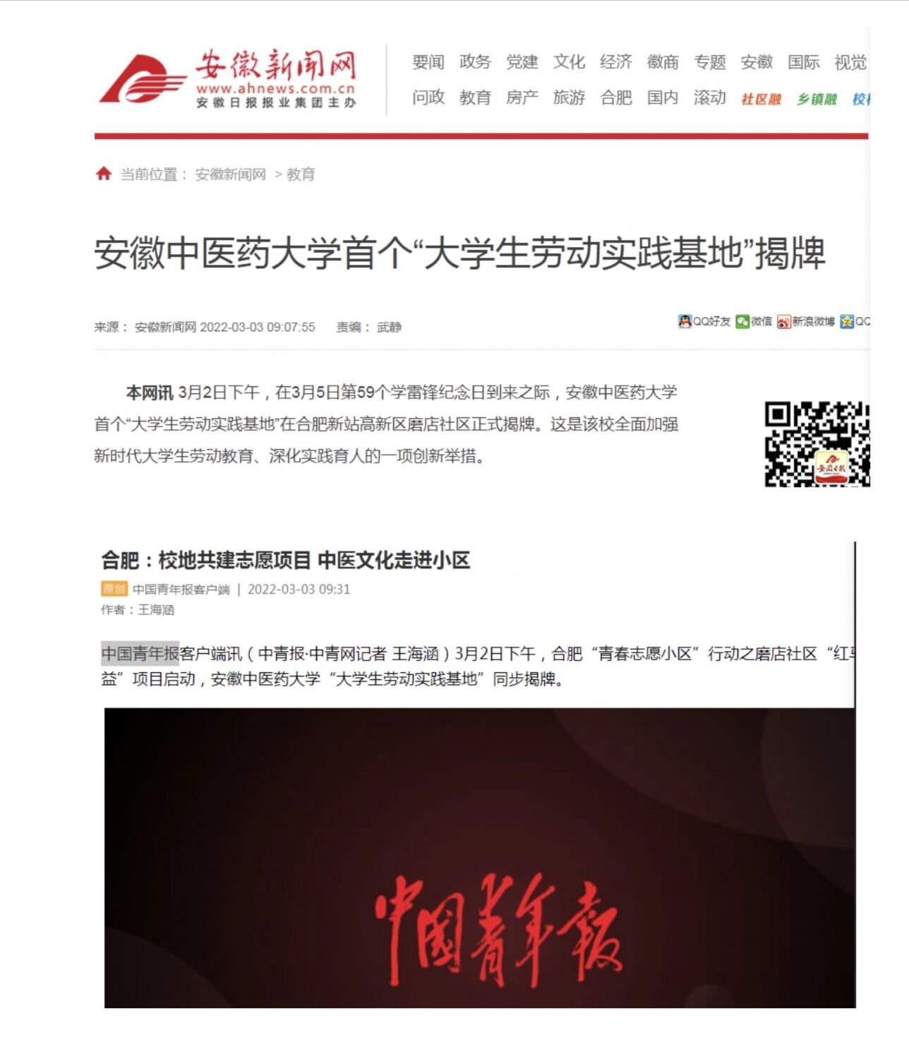 校地党团联动,共建志愿小区。活动受到安徽新闻网、中国青年报、中国教育新闻网、合肥新站区官微等媒体报道。