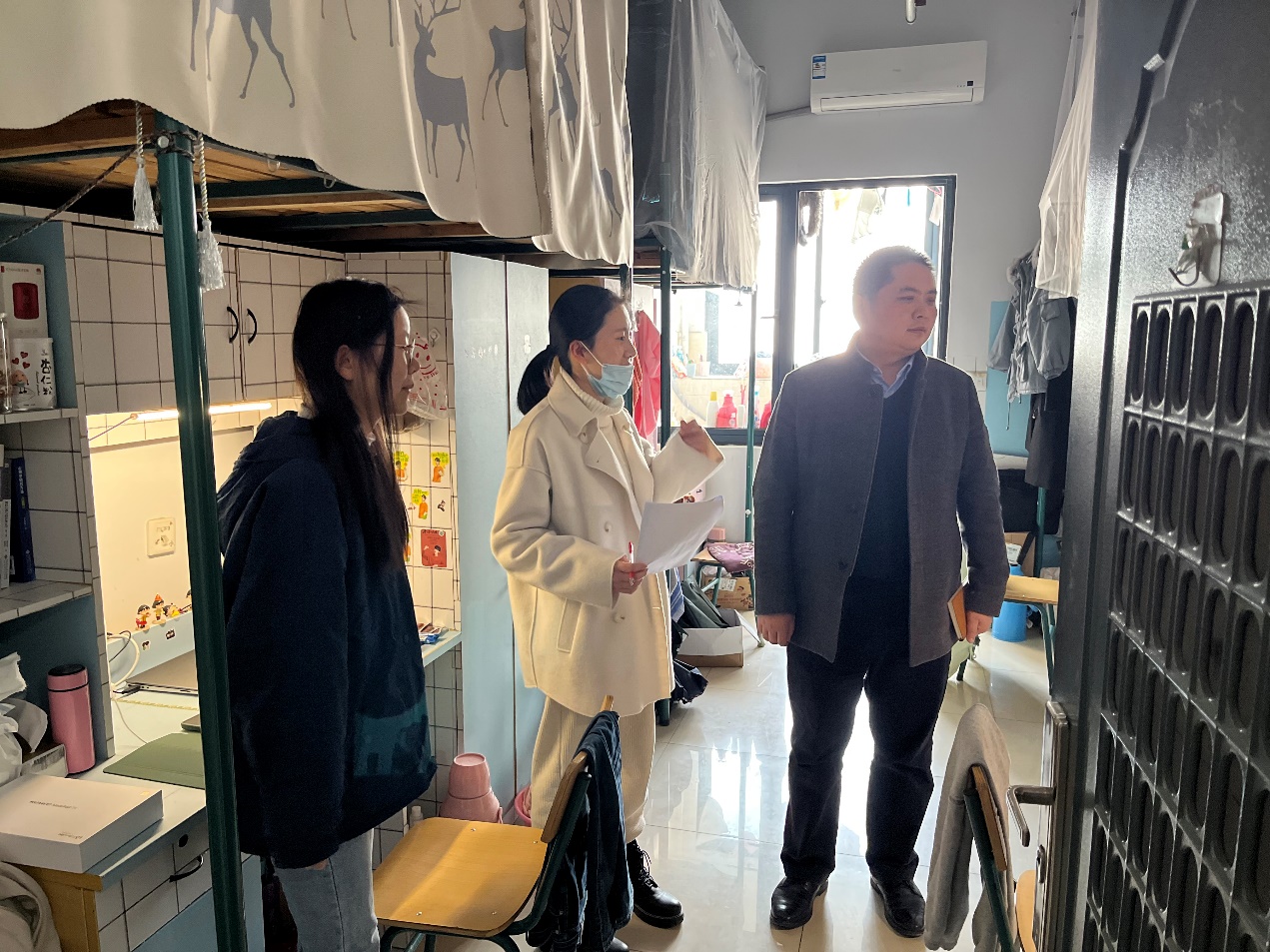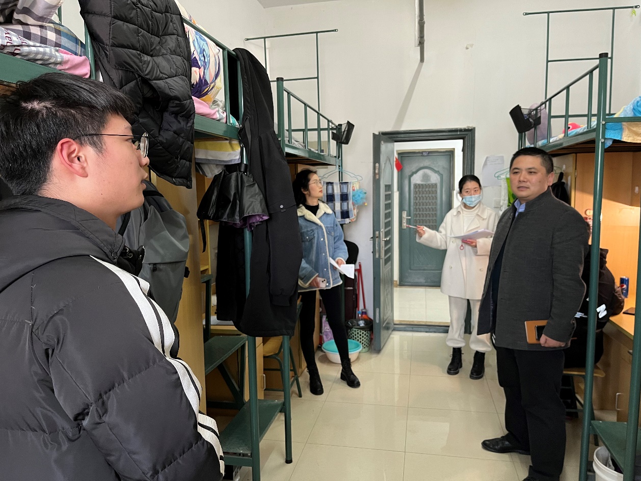 桂大鹏及辅导员老师贴心检查员工宿舍安全问题,提醒员工注意寝室用电规范安全,及时调整作息时间,保持健康的生活作息和良好生活习惯。在走访和过程中耐心倾听了同学们对于公寓用水、洗浴等问题的诉求,仔细了解同学们返校后的心理状态,对于同学们现阶段的困惑给予了有效建议,同时对寝室卫生进行检查。