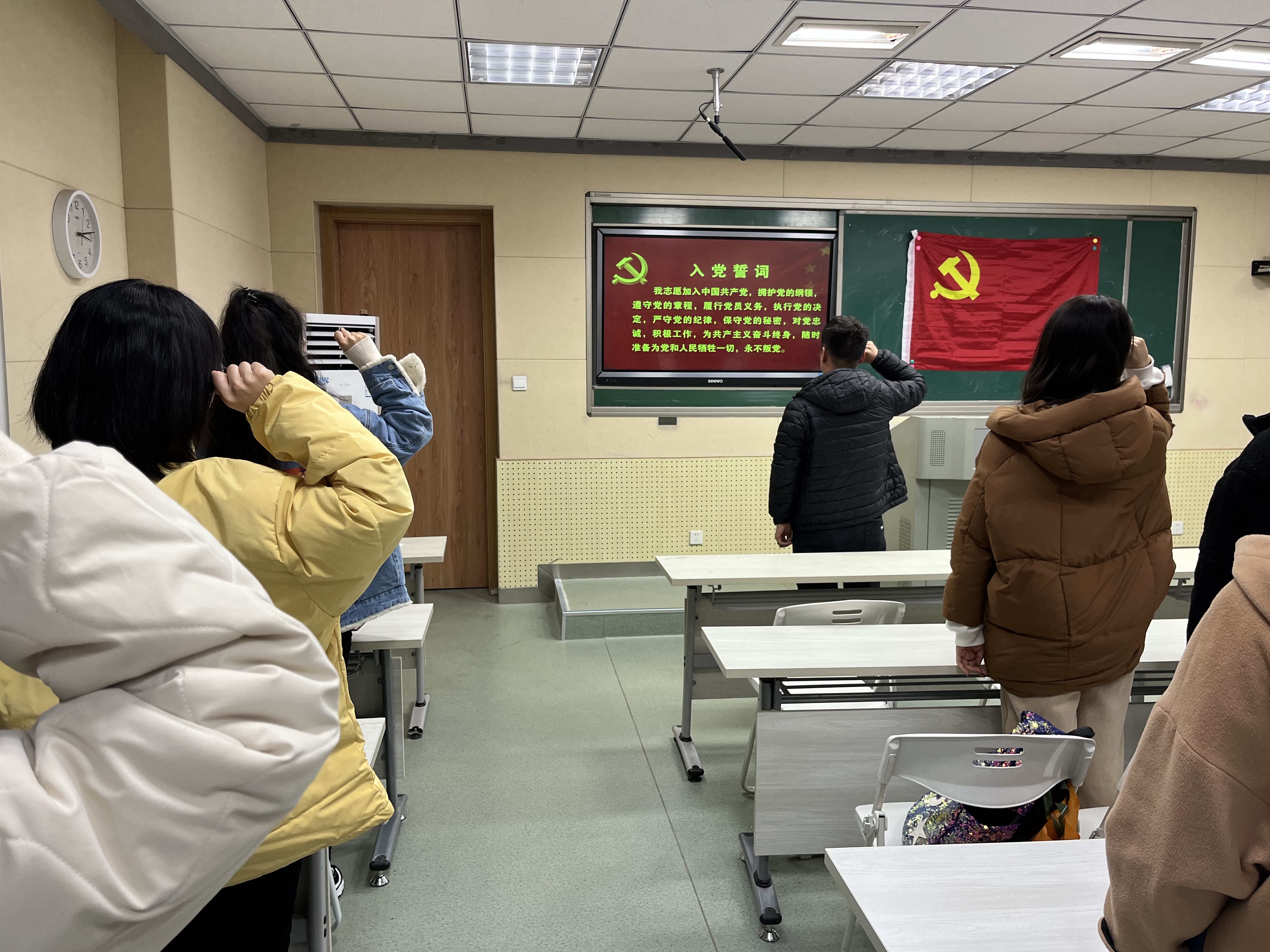 最后,员工党支部书记带领与会师生党员宣誓,与会党员高举右拳、庄严宣誓。