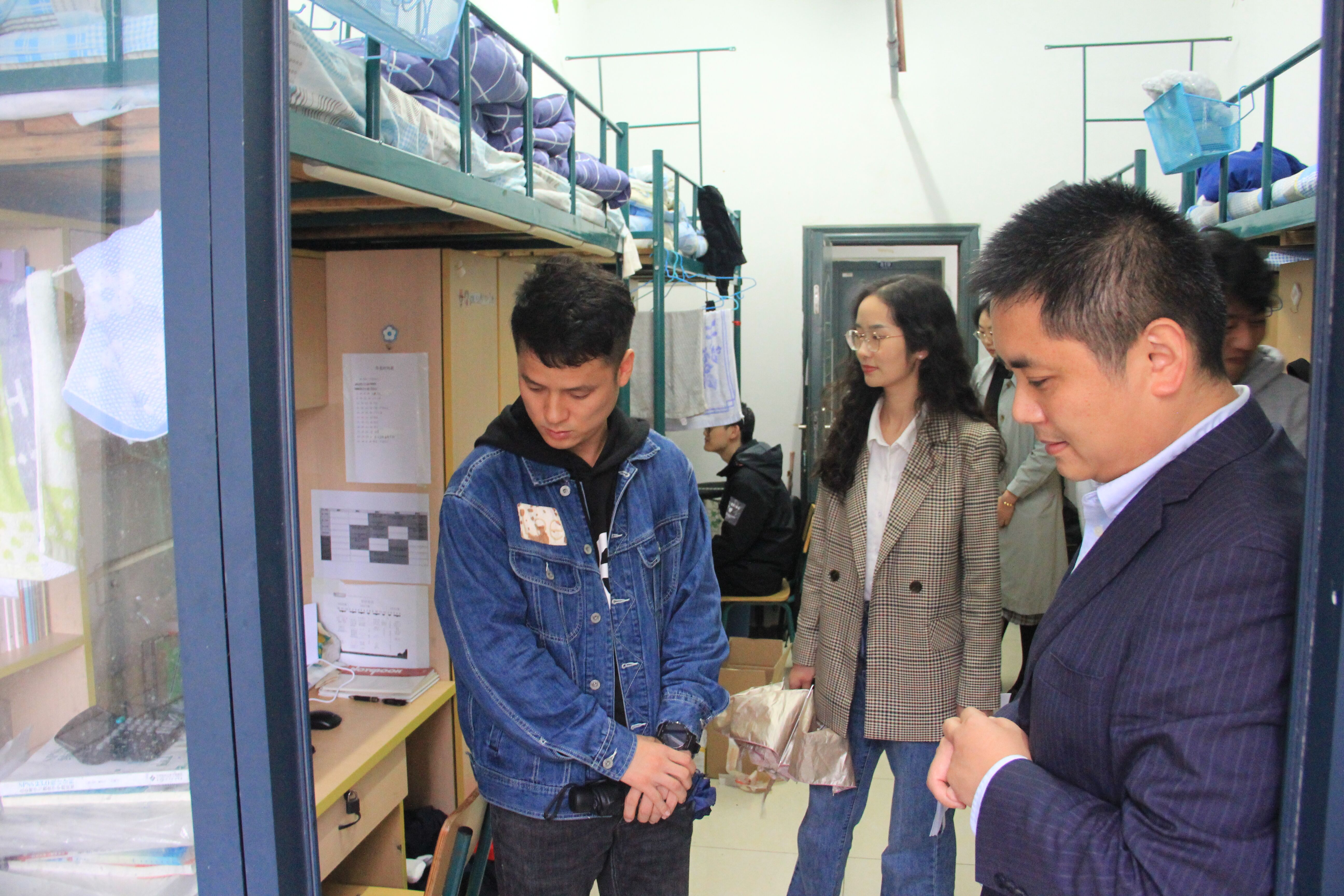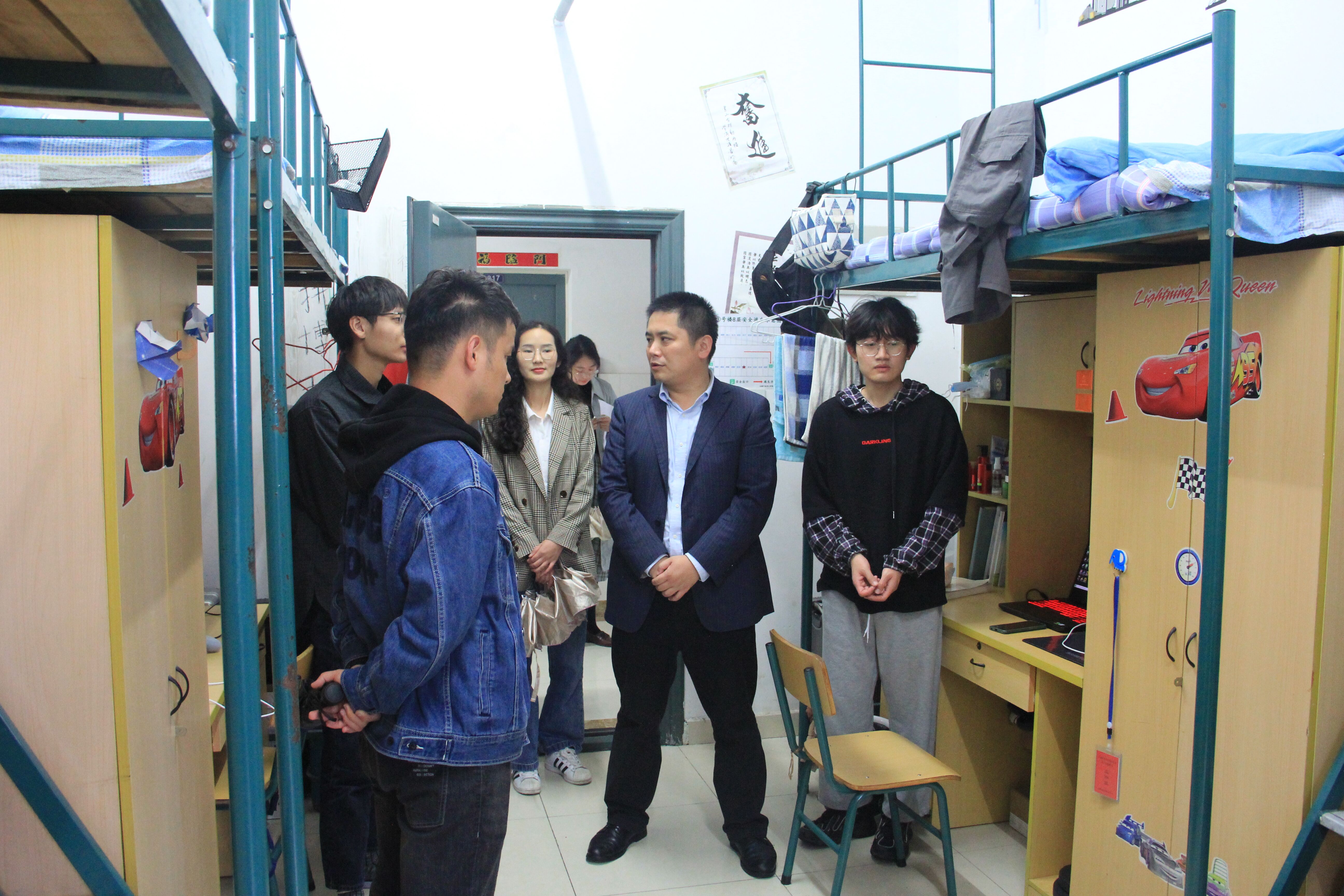 桂大鹏带领辅导员们重点查看了有关宿舍的卫生、水电安全、违规电器使用、宿舍文明等情况,现场要求各班级辅导员加强安全教育,杜绝安全隐患,以保障同学们生活学习、安全与校园稳定。