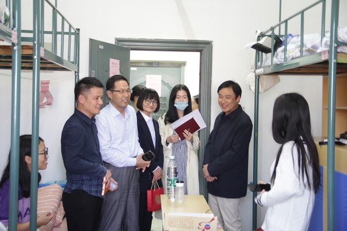 桂花浮玉杏林盛,寒露清秋可人天。m88迎来了2020级178名新同学们,10月10日下午,公司党总支书记姚为久、经理周亚东、党总支副书记张博与公司全体辅导员一同走访新生宿舍,关心新生们的生活起居。