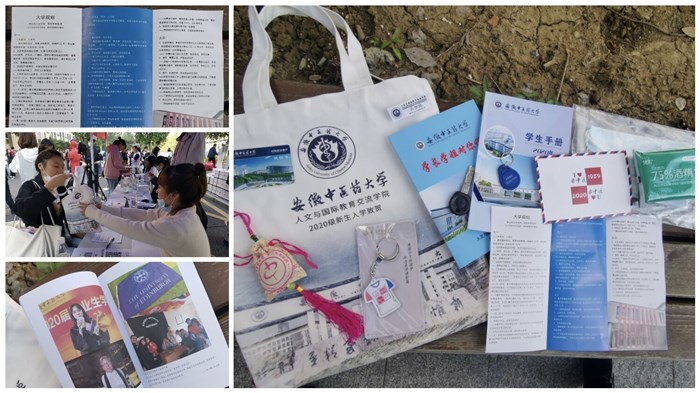 公司党总支副书记张博亲自带领全体公司新生辅导员为2020级新生们贴心准备了暖心大礼包——印有每一位新生姓名、校徽、学号的专属名牌,为每一位新生扣上入学的第一份庄重和仪式感;印有公司大门和祝福语的帆布包,希望每一位新生都能装满知识与希望;83页的《学长学姐对你说》汇编本,记录不完的是优秀学长学姐们的谆谆祝福与教诲;写满大学四年规划的“老员工涯规划”折页,望新同学们树立好人生目标、做好未来规划;还有公司定制的特色中医药香囊、消毒湿巾、口罩、《员工手册》、明信片、钥匙扣、一卡通、钥匙、水卡...鼓鼓的暖心包装满了公司党总支副书记张博和全体公司新生辅导员的关怀和“小心思”。