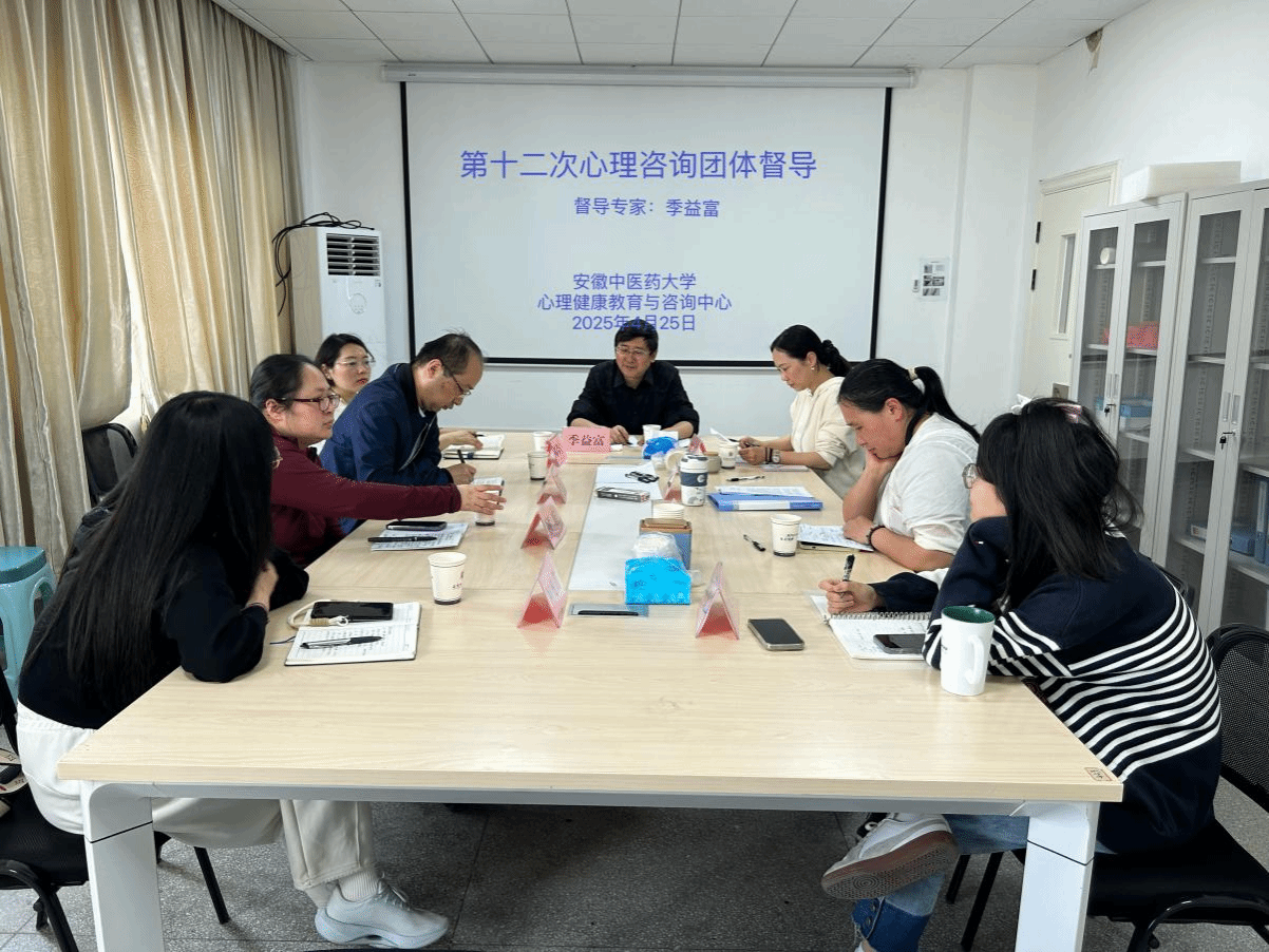 2025年4月25日下午,心理健康教育与咨询中心开展第12次心理咨询督导培训,安徽省精神卫生中心主任医师、中国心理学会注册系统注册督导师、安徽医科大学硕士研究生导师季益富担任督导专家,m88书记叶兰兰、中心全体专职咨询师、第一临床公司及医药信息工程公司心理健康工作相关老师共8人加了本次督导。