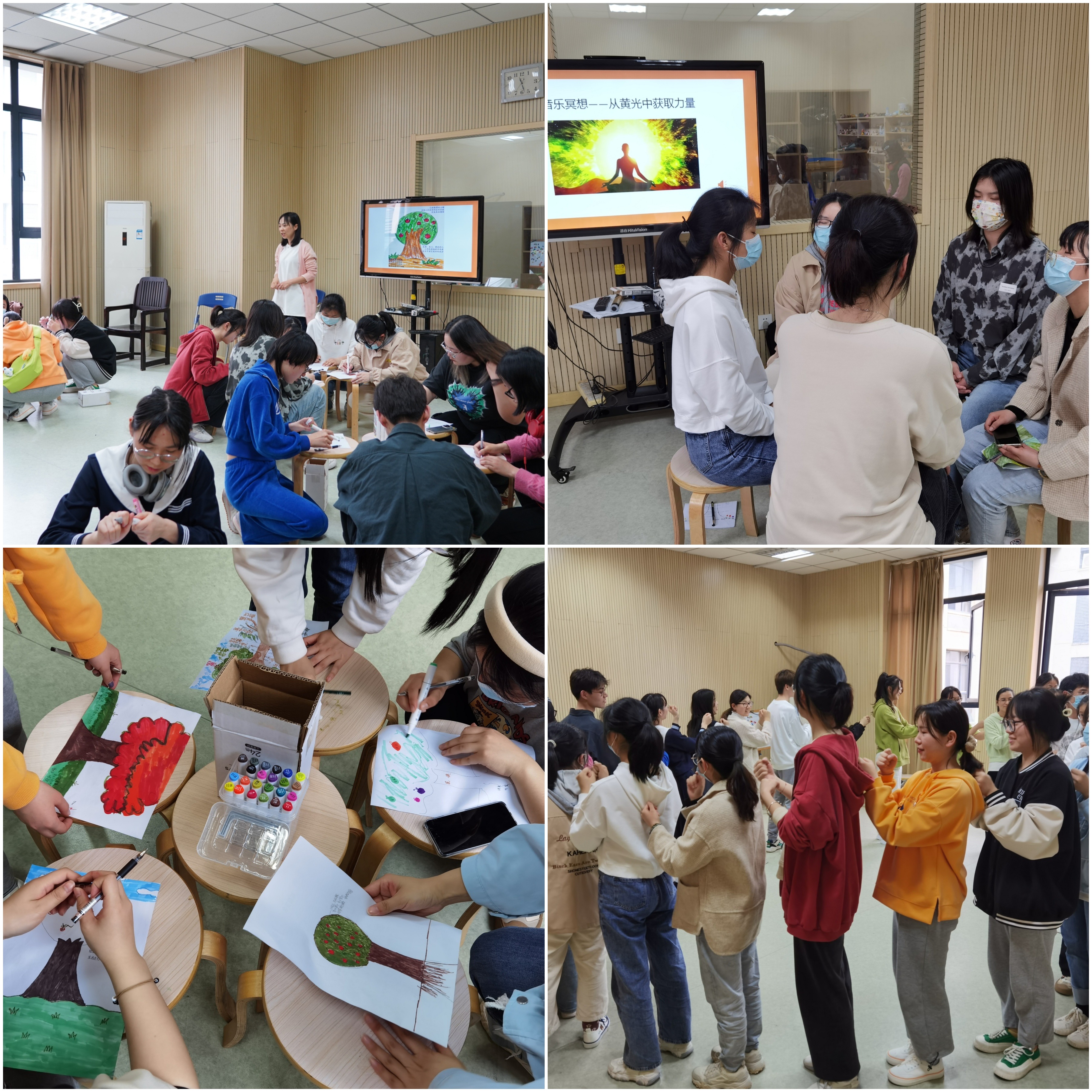本次团体辅导设置了热身活动、幸福之树、舞蹈之韵、音乐之光四个环节。在热身活动中通过“征集签名”破冰,让团队成员相互熟悉;在幸福之树环节,让团队成员通过绘画的表达手法绘制自己的“幸福树”,积极寻找可利用的支持从而挖掘幸福的资源;在舞蹈之韵环节,通过三首节奏明快的舞曲带领同学们与身体产生链接;最后在音乐之光环节,用催眠放松指导语引导同学们寻找自身的能量。