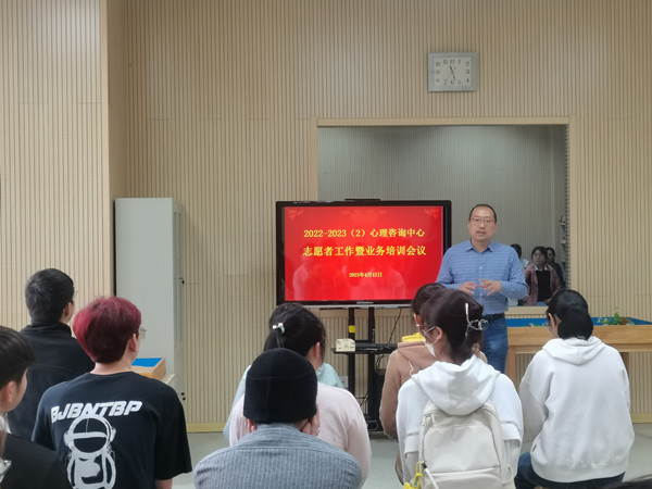 为更好的推动心理咨询中心的各项工作,4月12日,心理咨询中心在惟是楼346团体活动室召开了2022-2023学年第二学期志愿者工作会议。会议由心理咨询中心张俊杰老师主持,全体2021级志愿者参会。