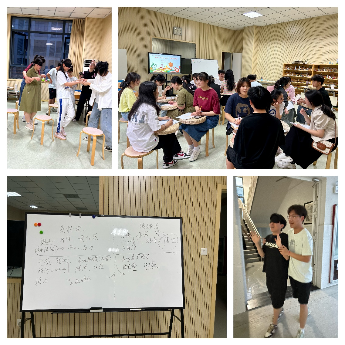 本次团辅以戏剧剧目的方式展开,在序幕中,康老师向大家说明了本次团体的目标和意义,引导大家思考自己作为“知心人”的角色定位。在第一幕中通过“很高兴认识你”的活动让大家打破沉默,彼此熟悉,初步建立关系。在第二幕“让我陪你走一程”中,让大家在盲行体验中切身体会支持者与被支持的角色。在第三幕“说说知心话”中,让大家结合心理骨干的角色回顾体验,分别挖掘支持者与被支持者两个角色的资源与优势,反思助人过程中的核心要素。在最后一幕“点亮知心人”中,康老师结合大家的总结,再次梳理了心理骨干的角色与功能,其中包括心理骨干是心理健康知识的宣传者、心理危机问题员工的发现者、同学心理健康的支持者以及心理健康维持的示范者,鼓励大家在做知心人的路上,与老师、同辈相互支持,知己心,护他心。