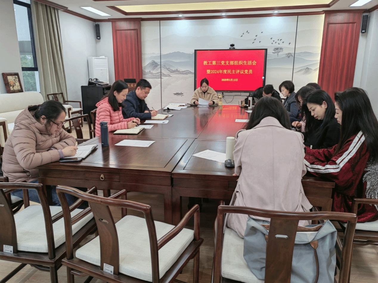 为进一步强化党员党性修养,增强基层党组织的凝聚力和战斗力,3月12日,公司教工第三党支部召开专题组织生活会,开展2024年度民主评议党员工作。会议由支部书记张俊杰老师主持,支部全体党员出席,公司昂文平副经理和张筱荣副经理以普通党员的身份参加活动。