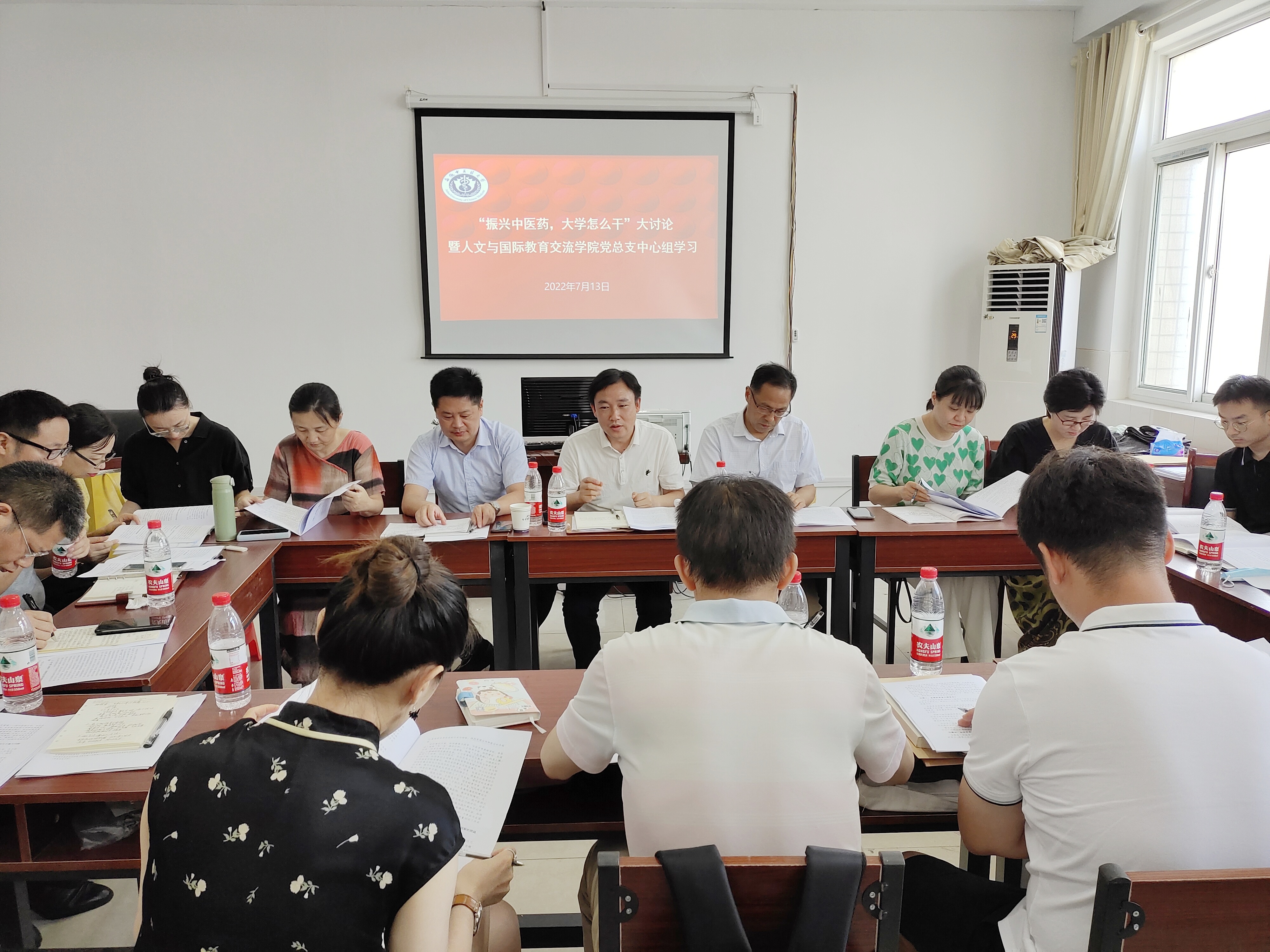 为贯彻落实公司党委书记王琦在“振兴中医药,大学怎么干”大讨论、大谋划、大行动动员部署会上的讲话精神及公司党委的有关工作部署、具体要求。7月13日上午,公司召开“振兴中医药,大学怎么干”大讨论暨党总支中心组学习会。公司党政领导、党总支委员、各支部书记、各系(中心)主任和各行政科室负责人参加会议。会议由公司党总支书记姚为久主持。