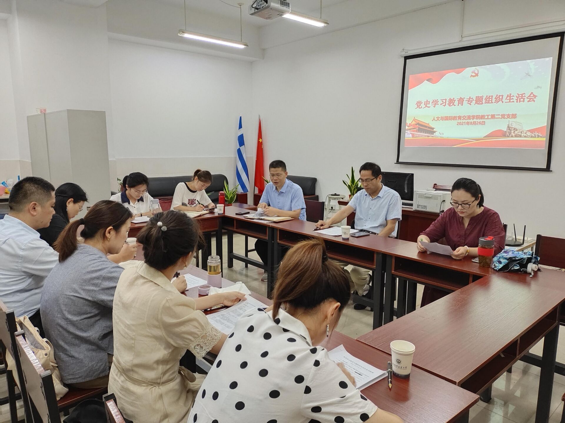 最后,支部书记就党员同志提出的共性和特别的批评意见和建议作专题组织生活会总结:一是感谢每位党员的认真准备和真诚批评,从而进一步加强了支部的党性原则;二是支部要更加积极主动地加强理论学习和教学科研业务的系统性结合,支部党员精诚团结协作共进,共同取得实实在在的的成果,为省级一流专业的建设打牢坚实基础;三是毫不动摇地立足本职工作,干好本职工作,增强服务意识,乐于奉献,充分发挥先锋模范作用;四是从党史学习教育中汲取更大更充足的力量,在“学史明理、学史增信、学史崇德、学史力行”道路上攻坚克难、奋勇前进,为教育事业和服务社会做出更大的贡献。会议历时近三个小时,会后,支部党员继续进行互动交流,就下一步党务工作和开学事宜等进行热烈讨论。
