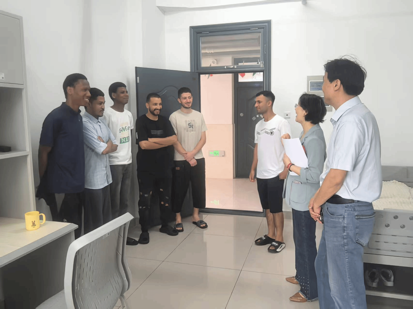 为进一步做好“五一”假期校园安全稳定工作,4月30日下午,公司党总支书记叶兰兰、副书记彭青和,带领全体辅导员前往员工(含来华职工)宿舍进行走访慰问,了解同学们的思想动态,同时进行宿舍卫生、用电安全宣传教育。
