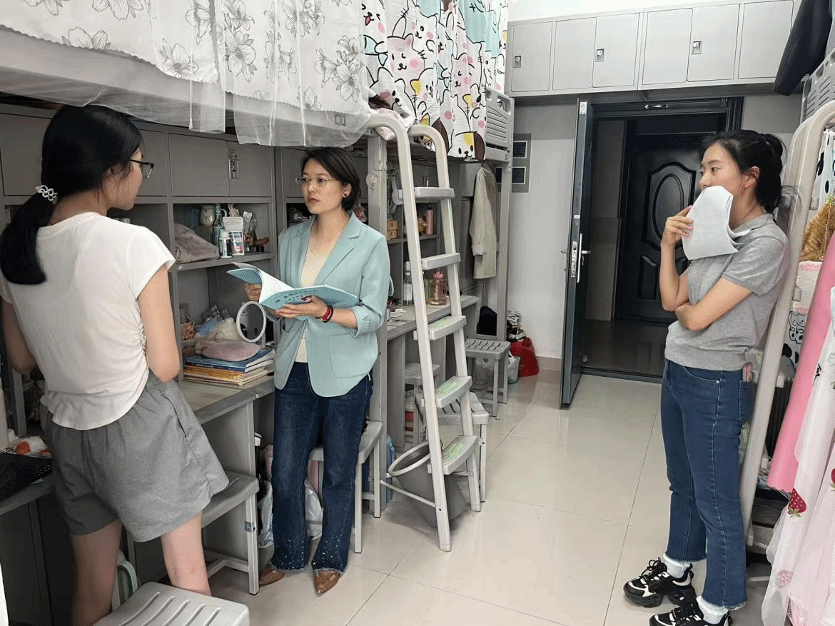 走访过程中,老师与同学们进行了深入的交流,亲切地询问了同学们在校期间学习生活情况、毕业生实习就业意向和求职困惑,详细了解了员工的离校和假期安排,并对宿舍卫生、用电安全等情况进行了检查,同时提醒同学们要提高安全防范意识,注意出行安全和防火、防盗、防诈骗。