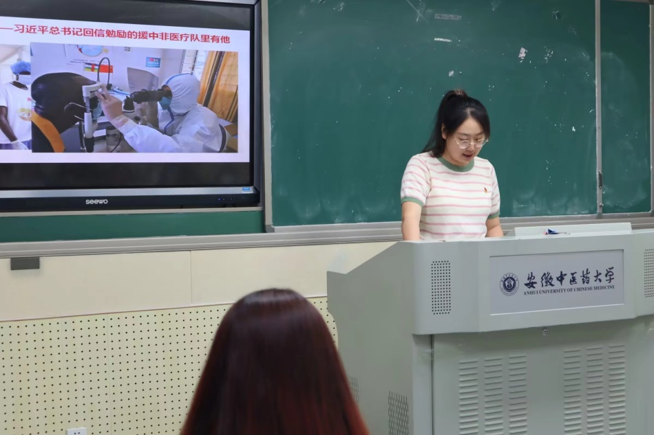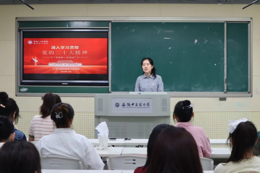 欧阳菁菁对党的二十大精神中的“两个结合”进行讲解,由点入面,详细地介绍了“两个结合”的历史进程,并从党的二十大报告文本出发阐述第二个结合内涵,结合具体案例引导同学们思考应该如何以实践出发推进两个结合,续写马克思主义中国化、时代化的新篇章。
