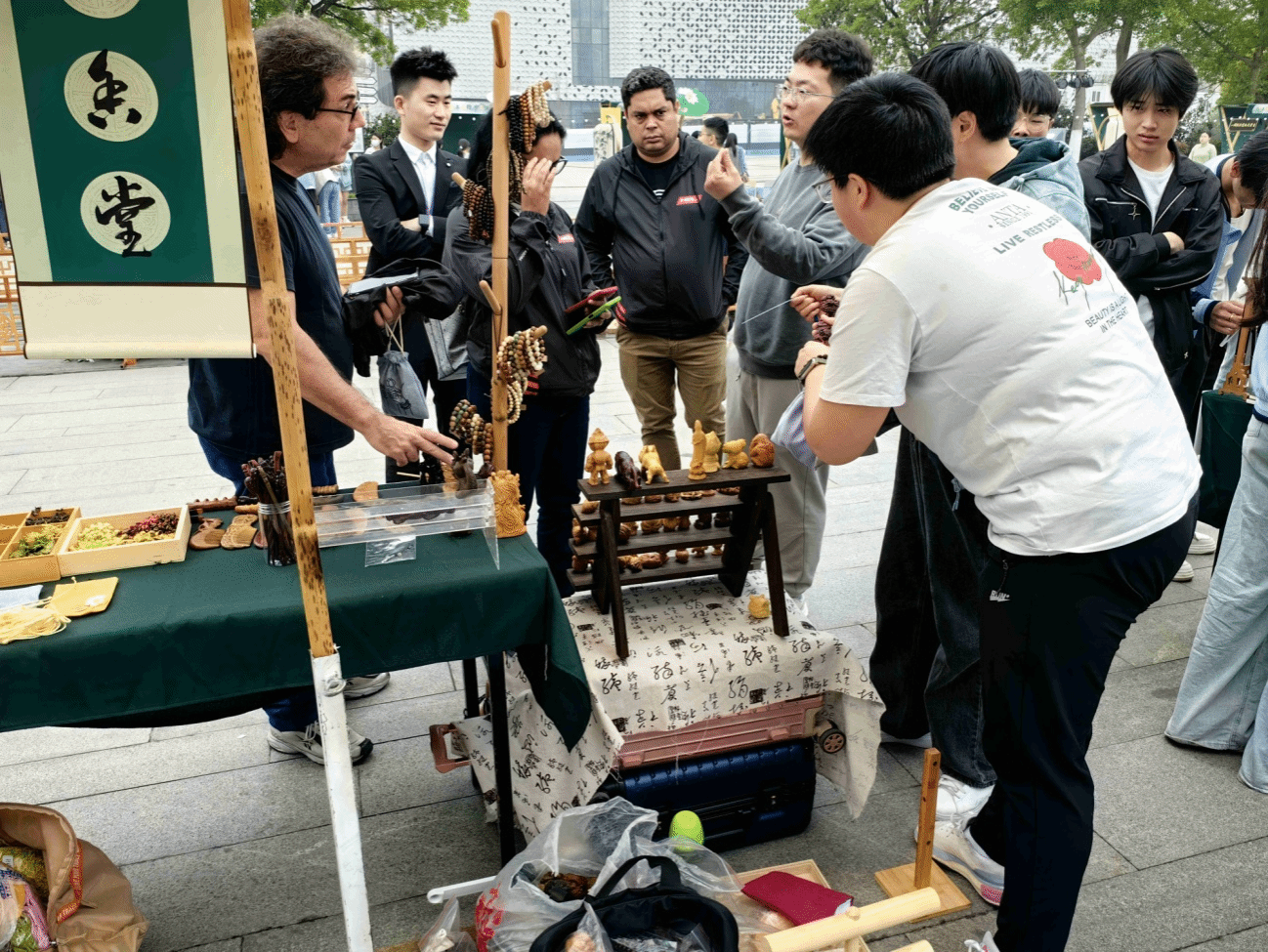 m88志愿者们精心准备了香囊制作、国风文创产品义卖等项目,展台吸引了大量游客驻足询问。香囊里装有艾草、佩兰、藿香、薄荷等药材,志愿者们耐心向游客介绍着中药香囊的功效,并指导大家DIY制作每个人独一无二的中药香囊。此外,还有志愿者手工雕刻的木雕,如绿檀、龙须藤、楠木等,以木材为画布,以刀为笔,通过志愿者的双手,将自然的美丽和生命力凝固在木头上。赶一场雅致古朴的国风雅集,让市井烟火飘出国风范儿。