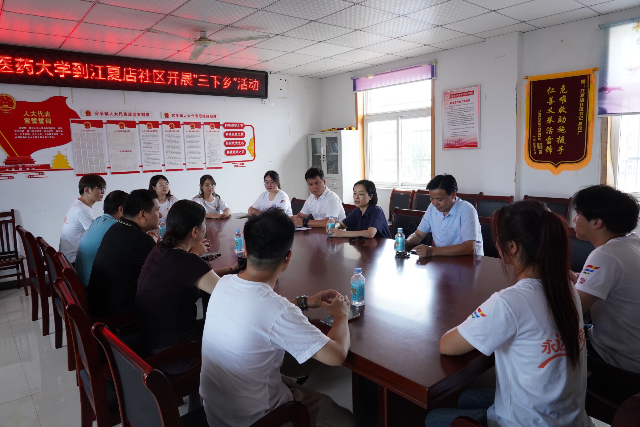 孙翔飞介绍了官亭镇以及江夏店社区的基本情况,并代表镇党委班子向实践团一行表示欢迎,希望校地双方以本次“三下乡”活动为契机进一步加强合作交流。金晓琴介绍了m88官网现状以及m88前期活动基础,双方就未来开展家、校、社协同青少年心理健康教育进行了深入探讨。