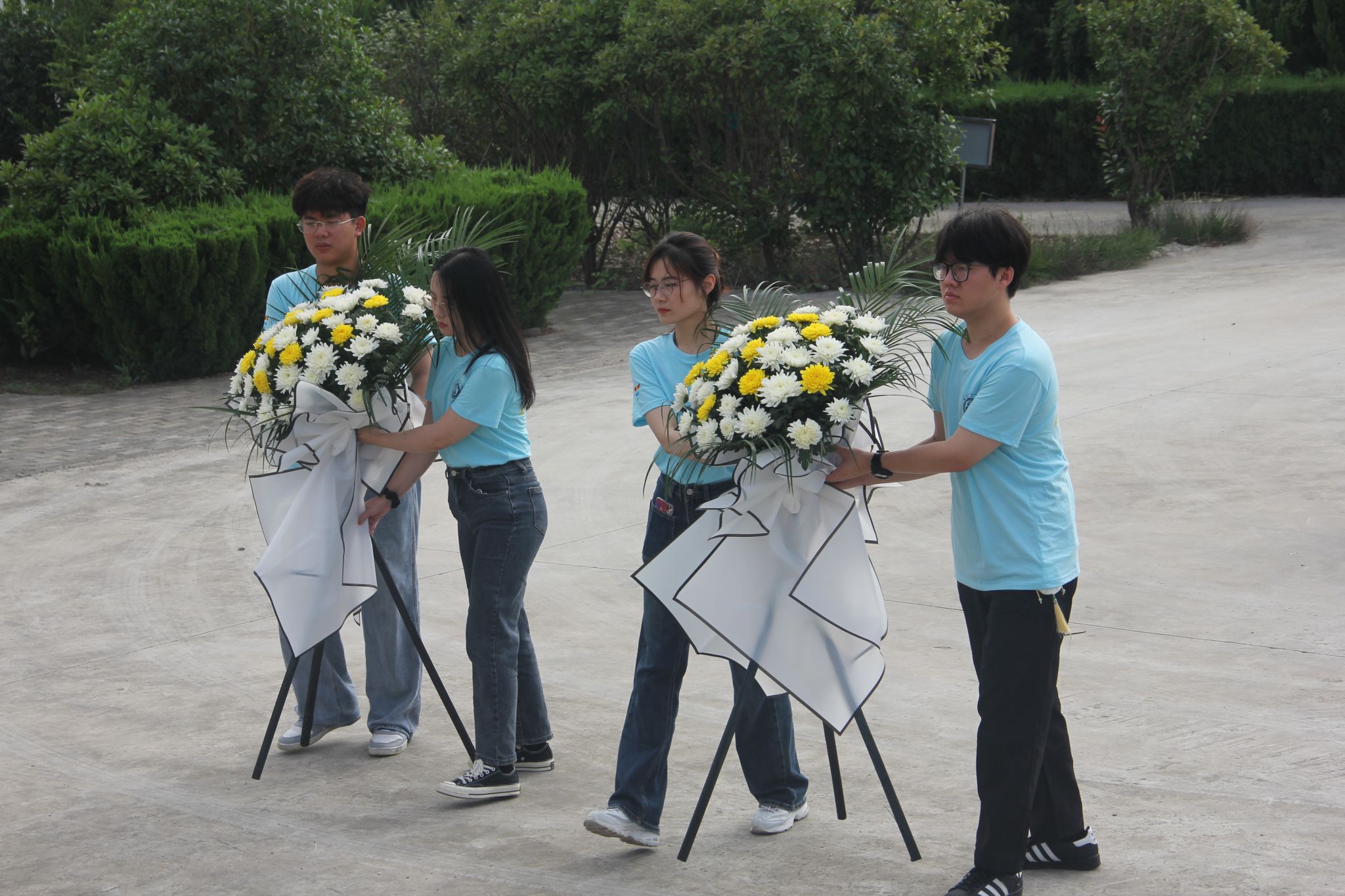 7月7日,暑期“三下乡”实践团的成员们走进下楼镇烈士陵园,开展“缅怀革命先烈 赓续红色血脉”主题团日实践教育活动。活动中,团队成员向烈士陵园进献花篮,通过瞻仰淮海战役中牺牲英烈的不朽事迹,铭记那段狼烟四起的动荡岁月和爱国志士英勇无畏的牺牲精神,墓碑上那一行生命定格的时间数字让同学们不禁肃然起敬,22级应用心理学的李昴同学表示:“他们牺牲的年纪,与今天的我们岁数相仿,正是因为有他们的付出,才有我们今天的幸福生活,勿忘历史,吾辈当自强”。在驻村书记的讲解之下,同学们就地上了一场实地红色教育思政课,厚植爱国主义情怀,铭记爱党爱国的时代教诲,立足于中国特色社会主义伟大实践,用实际行动,践行理想信念,告慰革命先辈和先烈、告慰历史。