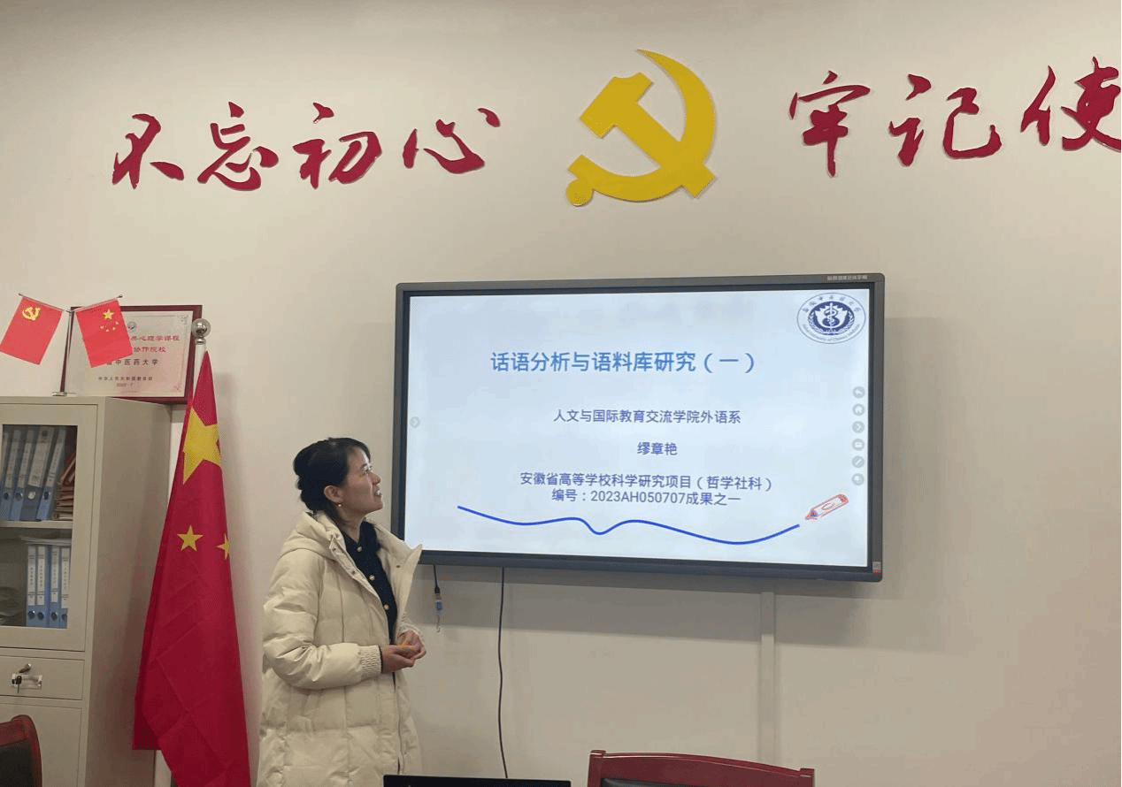 2023年12月14日下午,m88在479会议室成功举办第43期医学人文沙龙活动,外语系副教授缪章艳老师开展了“话语分析与语料库研究”第一期主题讲座,外语系和中医药国际传播系部分教师参加本次活动。