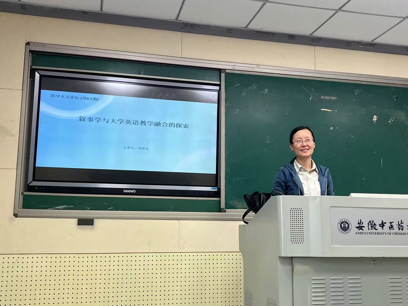 11月14日中午,公司举办医学人文论坛第六十期学术沙龙。本次学术沙龙的主题为“叙事学和大学英语教学融合的探索”,由外语系教师吴佳佳主讲,外语系和中医药国际传播系的部分教师参加了此次沙龙活动。