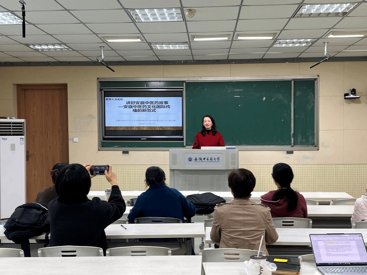 11月21日下午,公司举办了医学人文论坛第六十二期学术沙龙。本次学术沙龙的主题为“讲好安徽中医药故事—安徽中医药文化国际传播的新范式”,沙龙由中医药国际传播系杨方林老师主讲,中医药国际传播系和外语系的部分教师参加了本次交流活动。