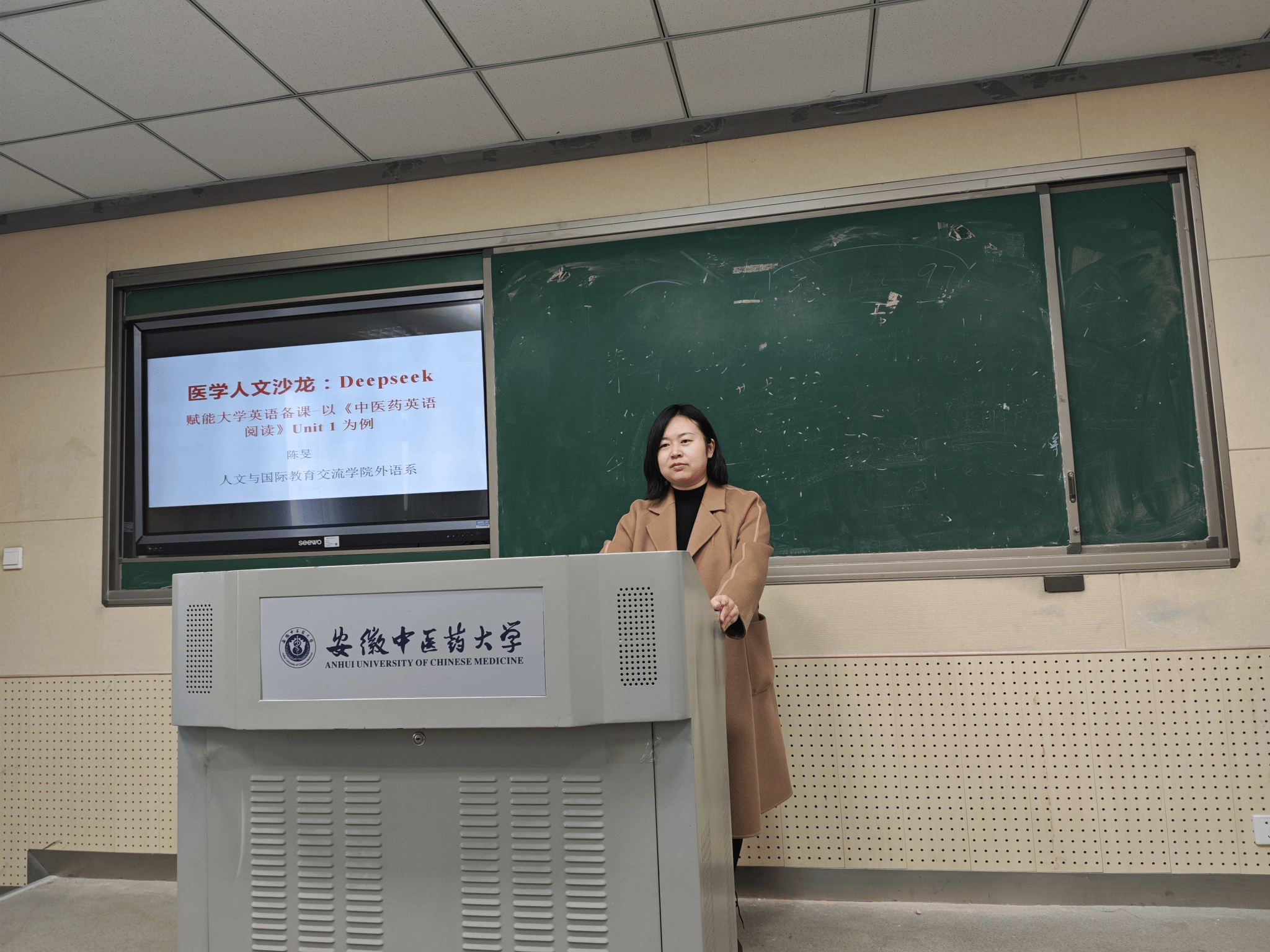 2月19日下午,m88学办医学人文论坛第六十六期学术沙龙活动,本次学术沙龙的主题是“Deepseek赋能大学英语备课--以《中医药英语阅读》Unit 1为例”,由外语系教师陈旻主讲,部分英语教师参与了此次沙龙。
