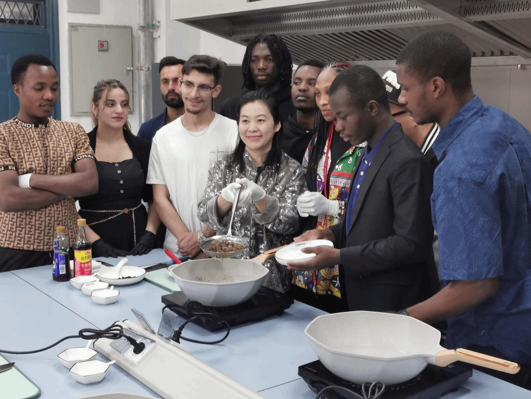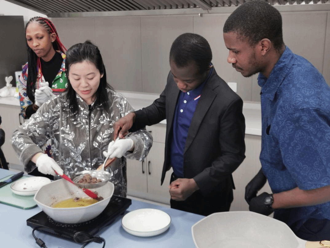 手作体验,解码东方味道。在厨艺工坊环节,职工在老师的指导下学习制作艾草肉丸,并用手机记录下自己的“首秀”。来自阿尔及利亚的常健安同学将制作视频实时分享给家乡亲人,收获满满的鼓励。