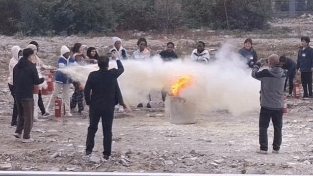 开展实操,安全入心。指导员现场示范了干粉灭火器的使用过程:一提二拔三握四对五喷,即提起灭火器,拔掉保险销,握住喷管最前端,对准火焰根部,往下按压阀,对准火焰喷射。职工们在演练环节手拿灭火器,根据培训要领,一丝不苟地完成使用干粉灭火器灭火的过程。