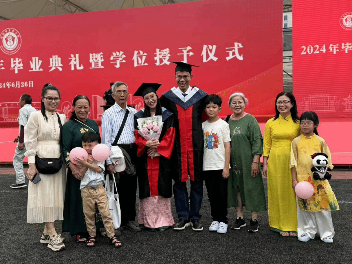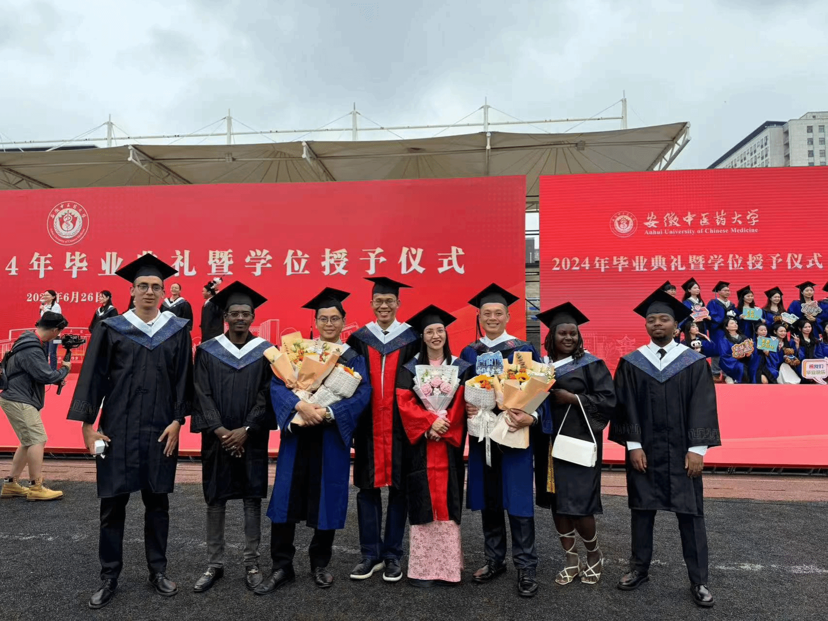 参加毕业典礼的9名毕业生代表中有2024届毕业的1名博士职工金额5名本科职工,此外还有1名2023年12月毕业的博士职工及2名2020年疫情期间毕业的硕士职工也从马来西亚和越南赶到公司参加了本届毕业典礼。其中5名本科职工毕业生系公司第二届整建制招生全英文授课药学专业毕业生,2名越南籍中医学博士职工为公司自2019年与越南胡志明市医药大学签署合作协议后首批毕业的博士研究生,是两校合作培养高层次人才的重要成果。2名马来西亚籍硕士职工毕业生经历3年疫情,终于重回安中医参加毕业典礼、拨穗正冠,心情无比激动。