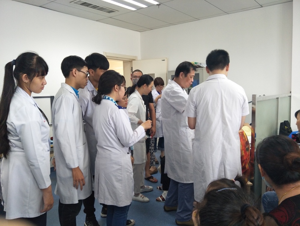 7月1日至7月12日期间,越南师生跟随公司一附院杨骏教授、袁爱红主任、潘宾医生、刘振医生等知名专家学习,了解药材性状和剂型制作,并学习辩证方法以及针灸和推拿手法,观摩拔罐技术,同时也参加了针灸专题学术讲座。