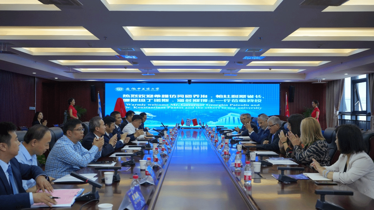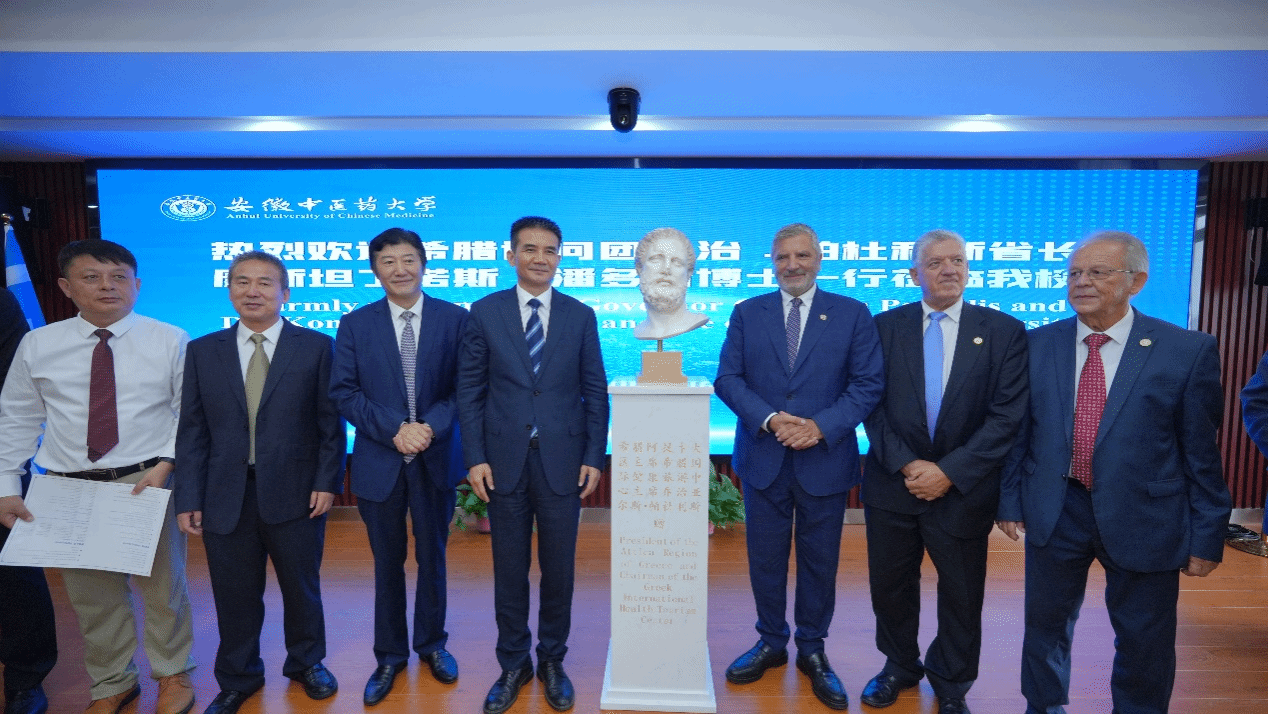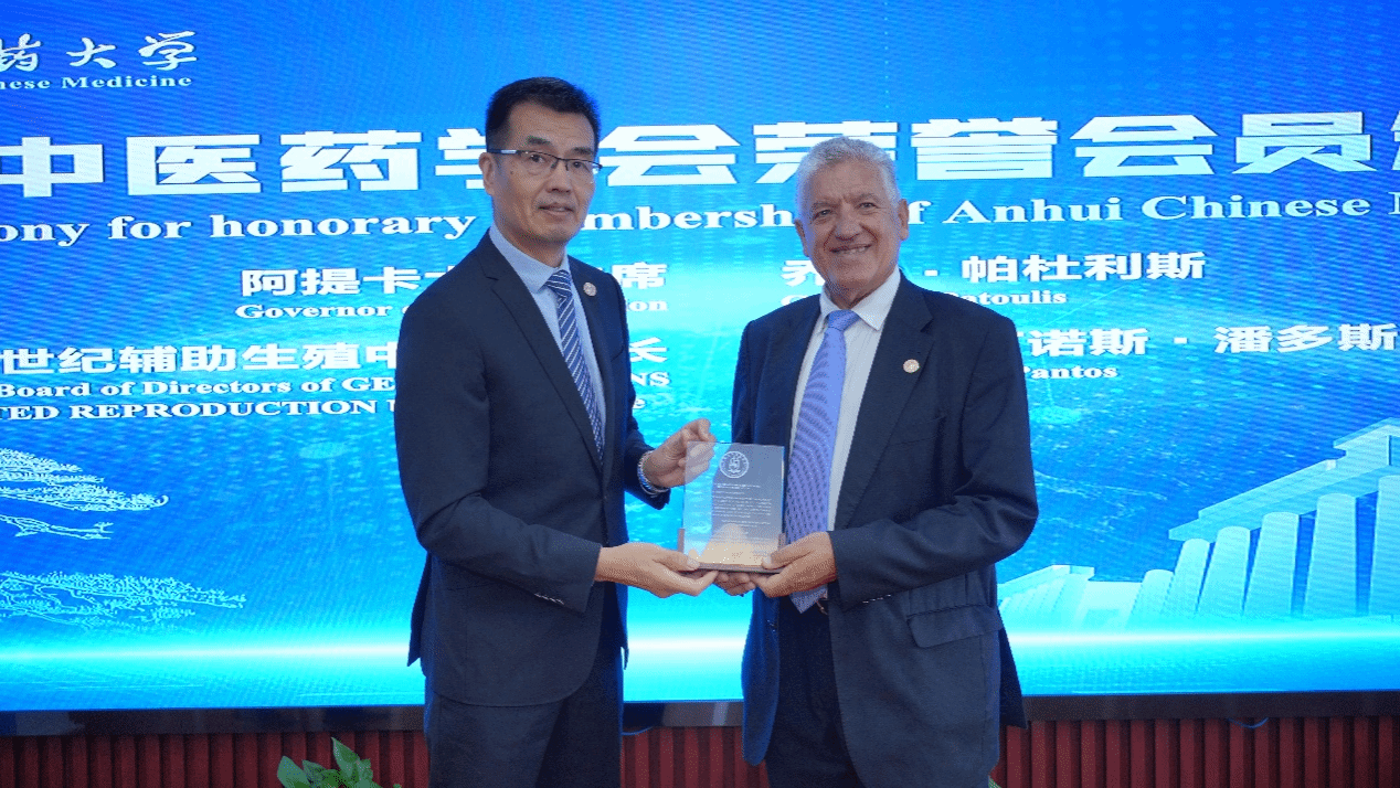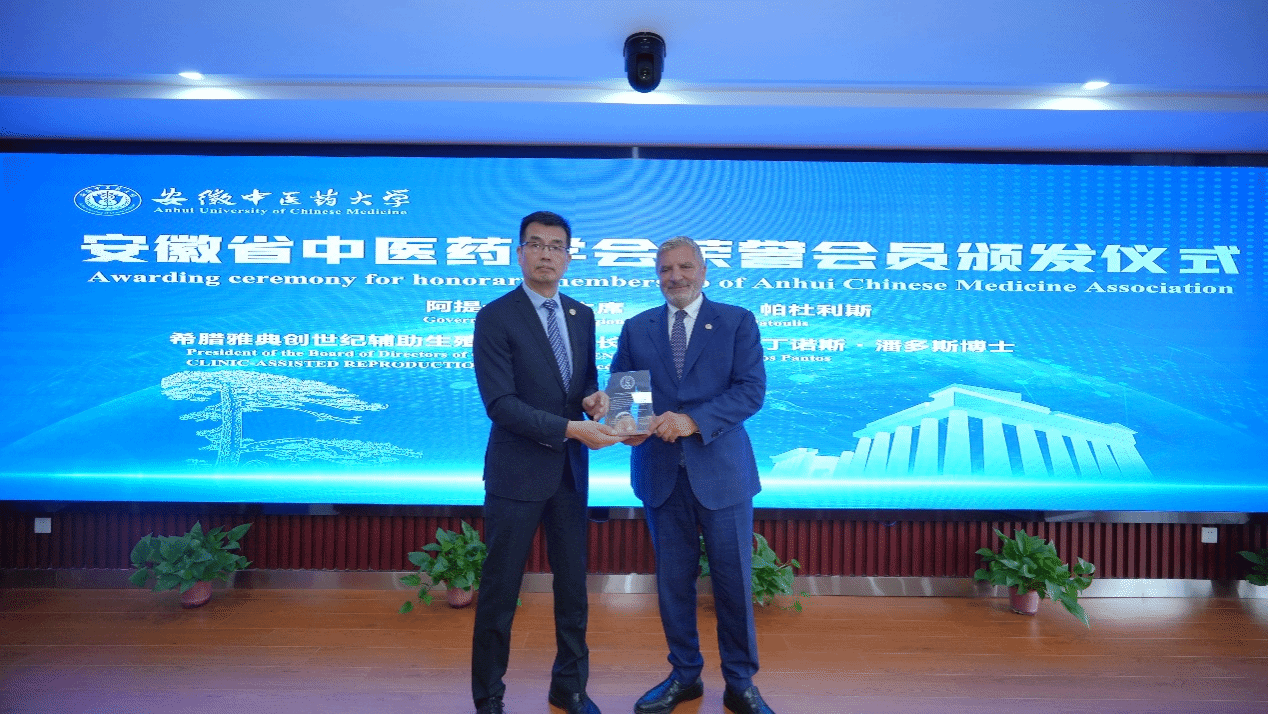 9月21日上午,希腊阿提卡省省长、雅典医学联合会主席乔治•帕杜利斯(Giorgos Patoulis)、希腊国际健康旅游中心副主席兼希腊辅助生殖协会秘书长康斯坦丁•潘多斯博士(Konstantinos Pantos)等一行8人来公司访问。希腊阿提卡省省长、雅典医学联合会主席乔治•帕杜利斯(Giorgos Patoulis)一行首先参观了公司中药资源中心、新安医学文化馆,接着出席了中-希医学交流与合作突出贡献奖颁奖仪式和客座教授受聘仪式。安徽省人民政府外事办公室出国管理处处长王浩、m88官网党委书记王琦、董事长彭代银、副董事长许钒、安徽省中医药学会副秘书长蒋宏杰、m88官网人事处、外事办、第一附属医院、第二附属医院等相关部门负责人等出席了颁奖和受聘仪式,仪式由m88官网副董事长许钒主持。