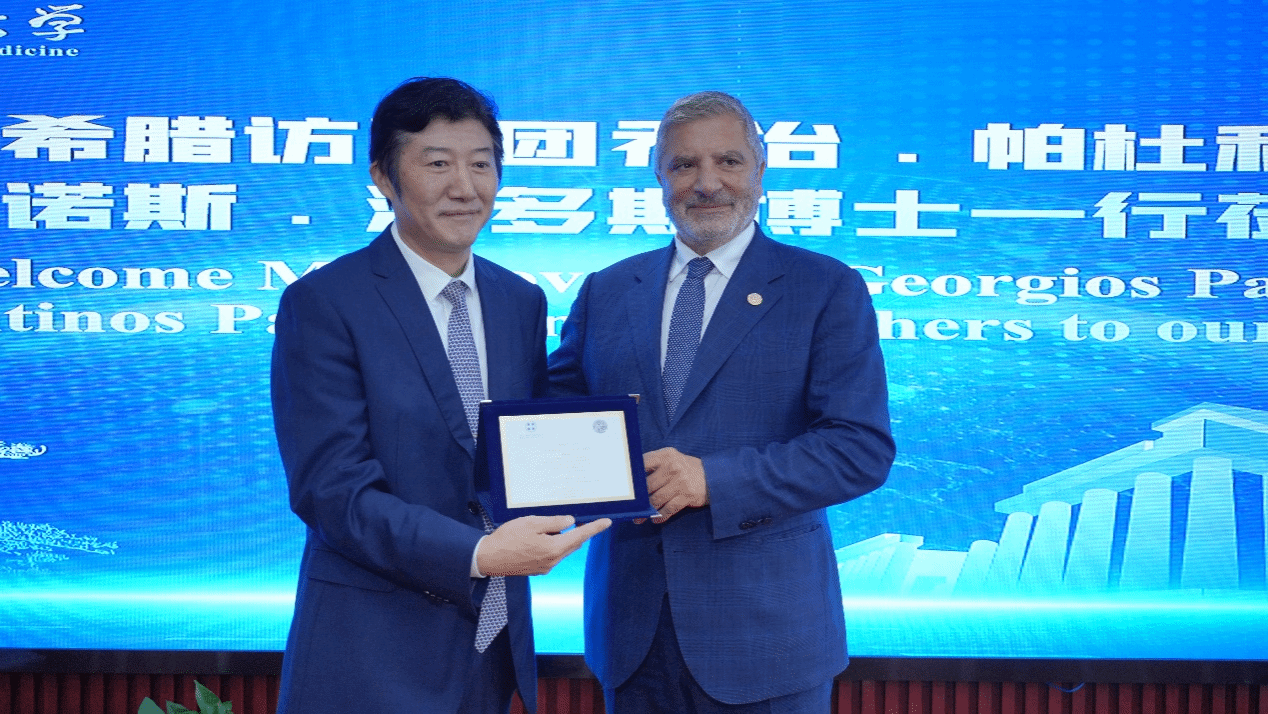 帕杜利斯省长代表希腊阿提卡省政府和雅典医学学会向彭代银董事长颁发中国-希腊医学合作与交流杰出贡献奖